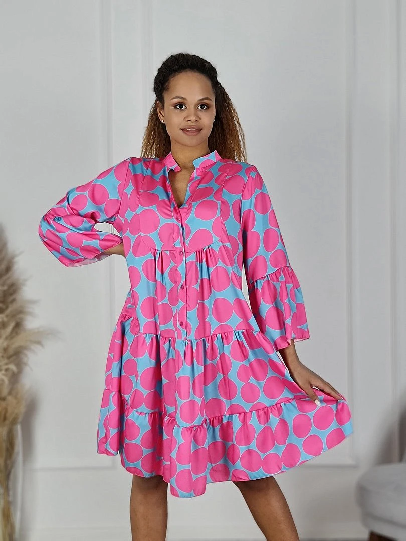 Платье J-Clair с геометрическим принтом голубое/фуксия, фотография №2